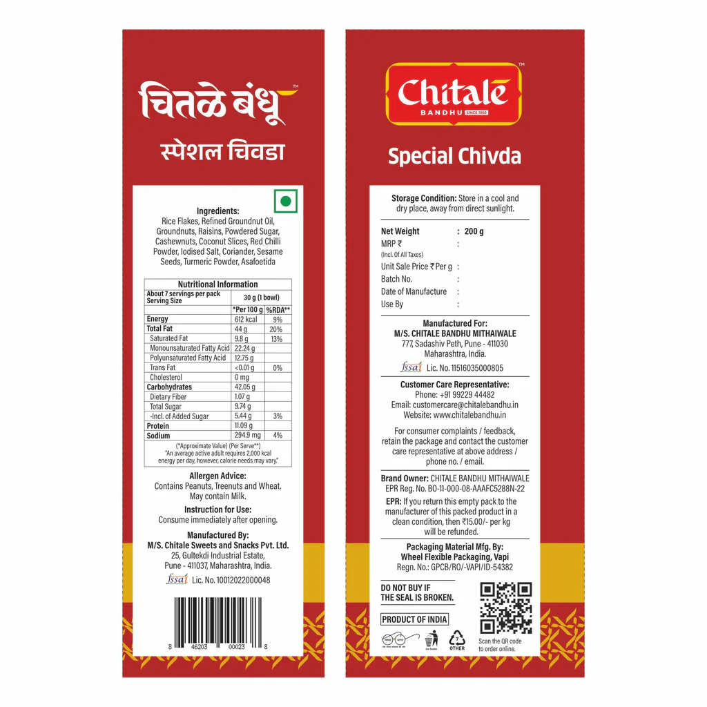 Handcrafted using premium quality ingredients and traditional recipes, Chitale Bandhu Special Chivda is a perfect balance of savoury and spicy flavours. Whether enjoyed as a quick snack on-the-go or served as a delightful accompaniment to your evening tea, this savoury delicacy is sure to satisfy your cravings and leave you wanting more.
